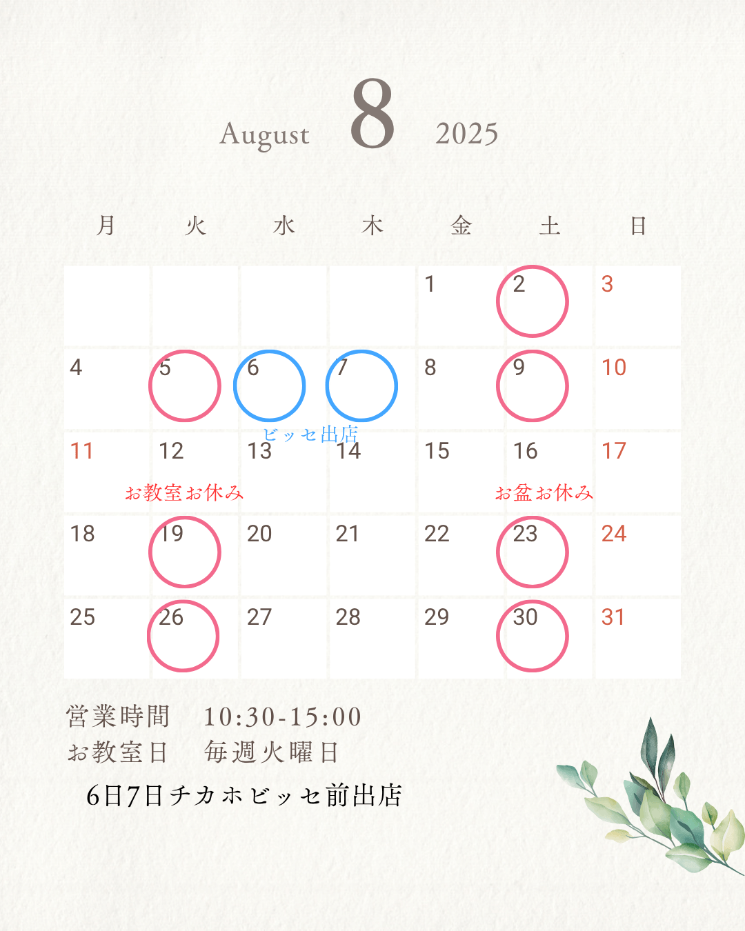 🌸【8月のお知らせ】🌸